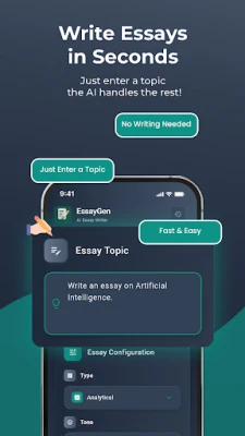 AI Essay Generator app is a learning aid, not a cheating tool. Use outputs as references, outlines, or first drafts. Your prompts and essays stay on your device – we never sell data.