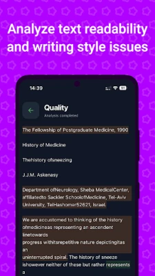 • Writing quality analysis for readability and style improvement